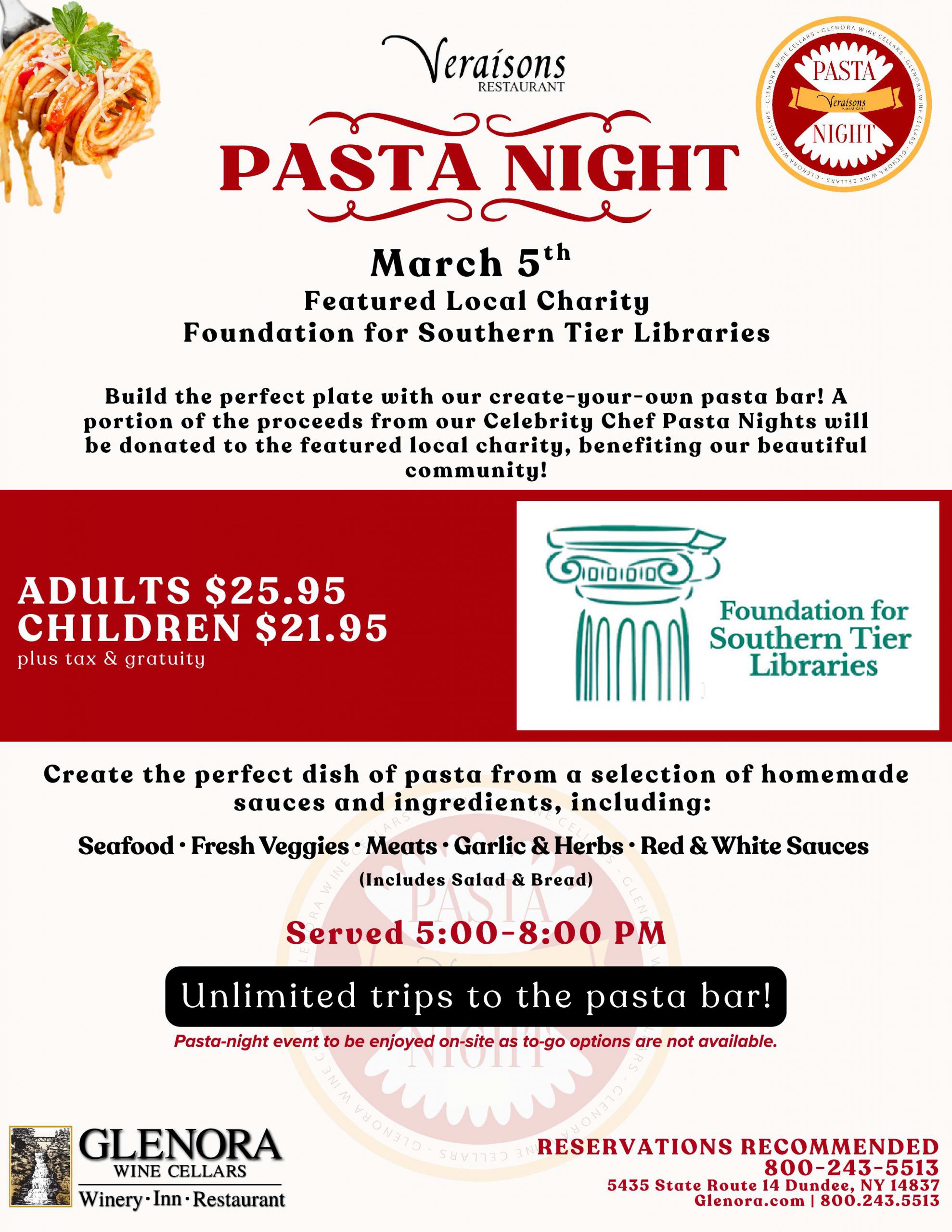 Join us at Pasta Night this March 5th — Help fund 2026 grants to Public Libraries!